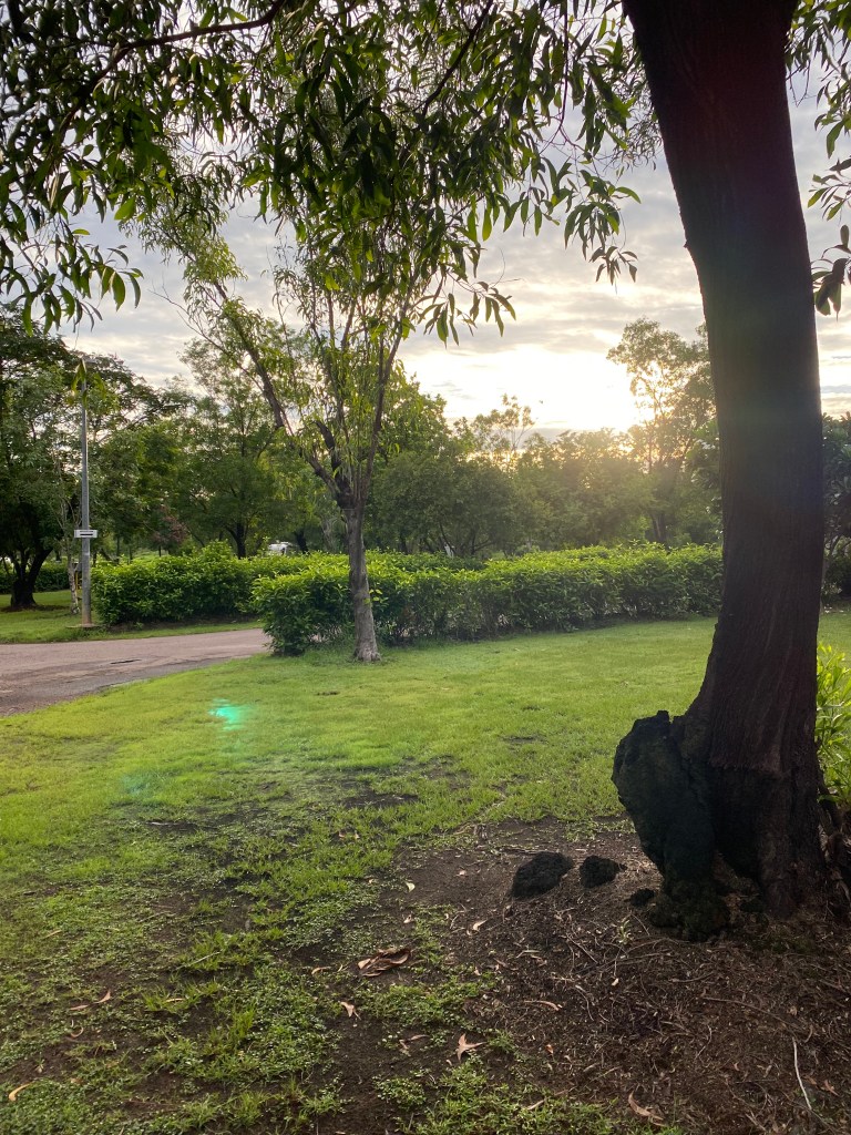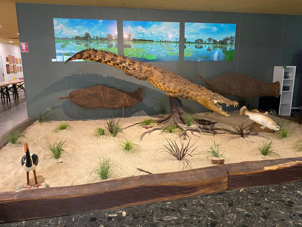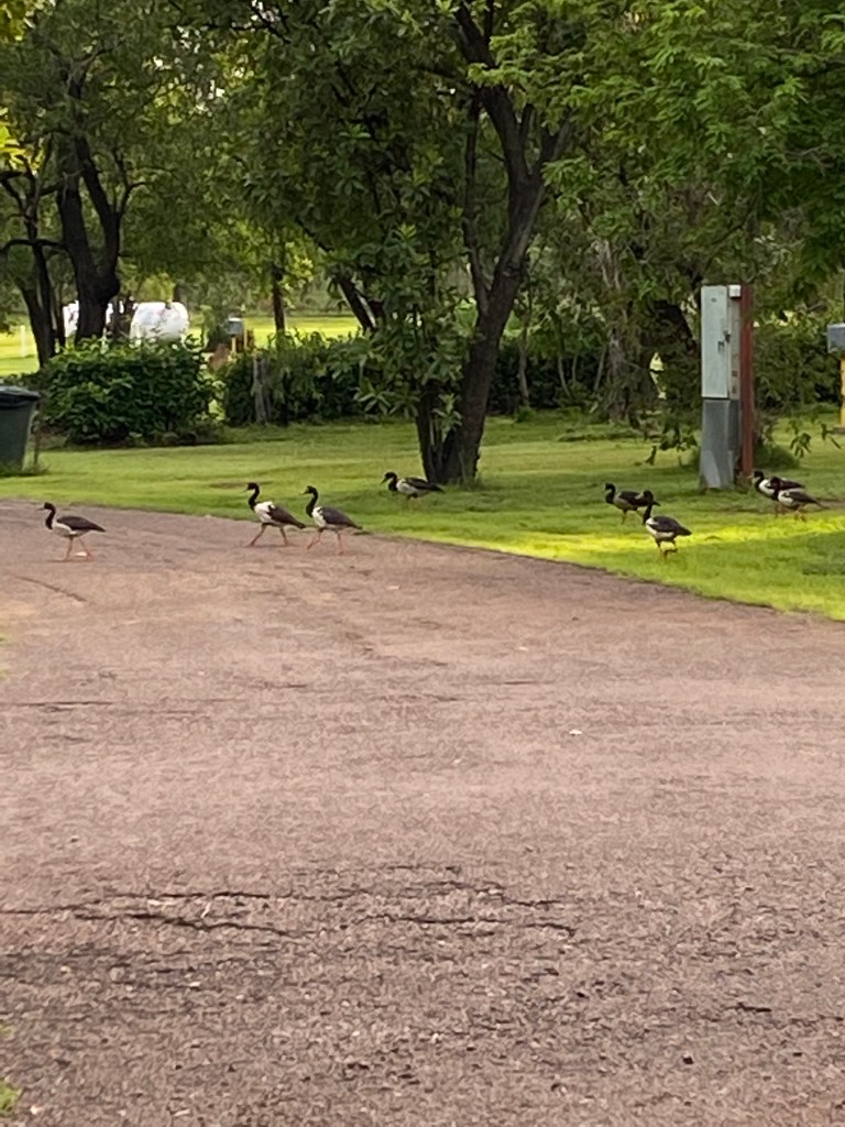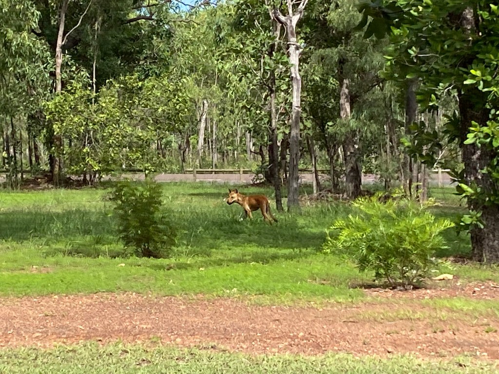 We arrived at our campground in Jabiru, beautifully presented palm tree’s on arrival with the pick of the grounds for our campsite, after a few small manoeuvres to get the van “Belindafied” we unhitched and headed into the town centre. Now that surely doesn’t come as a surprise that we would be heading back to the shops again, but this time it was for a food top up and to get a coffee… little did we know that our expectations were very far beyond what was a) open b) available – both. We did manage to get an afternoon coffee at the Kakadu Crocodile Hotel. The afternoon was all about having a swim in the resort-style lagoon which was by far the best pool we had been in and compared to the natural waterfalls, Hidden Valley Caravan Park Pool or the wave pool on the foreshore in Darwin, this one was at least more refreshing being a tad cooler. RG was BBQing tonight’s dinner when it must have smelt delicious as we soon noticed a wild Dingo x Dog wandering around the park.