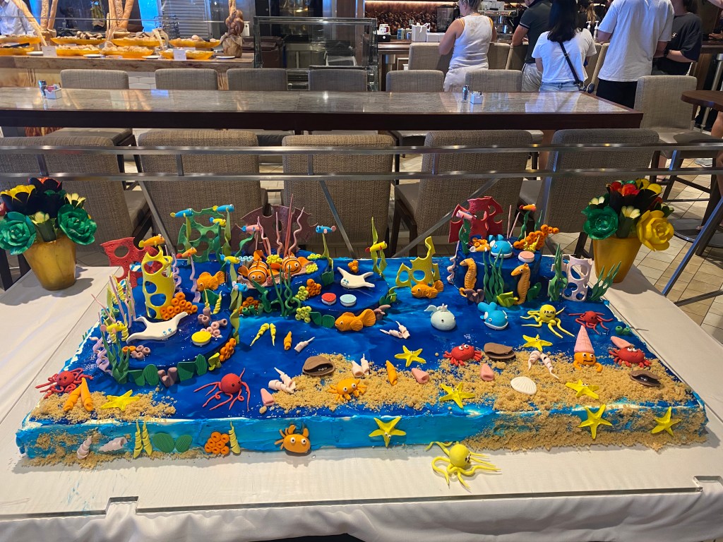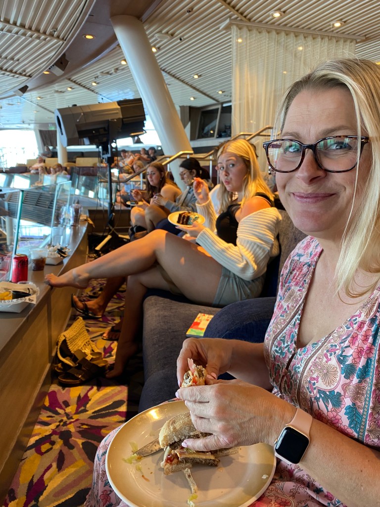 I challenged myself on the last cruise day to eat at all the food venues listed below throughout the day, which was a feat.