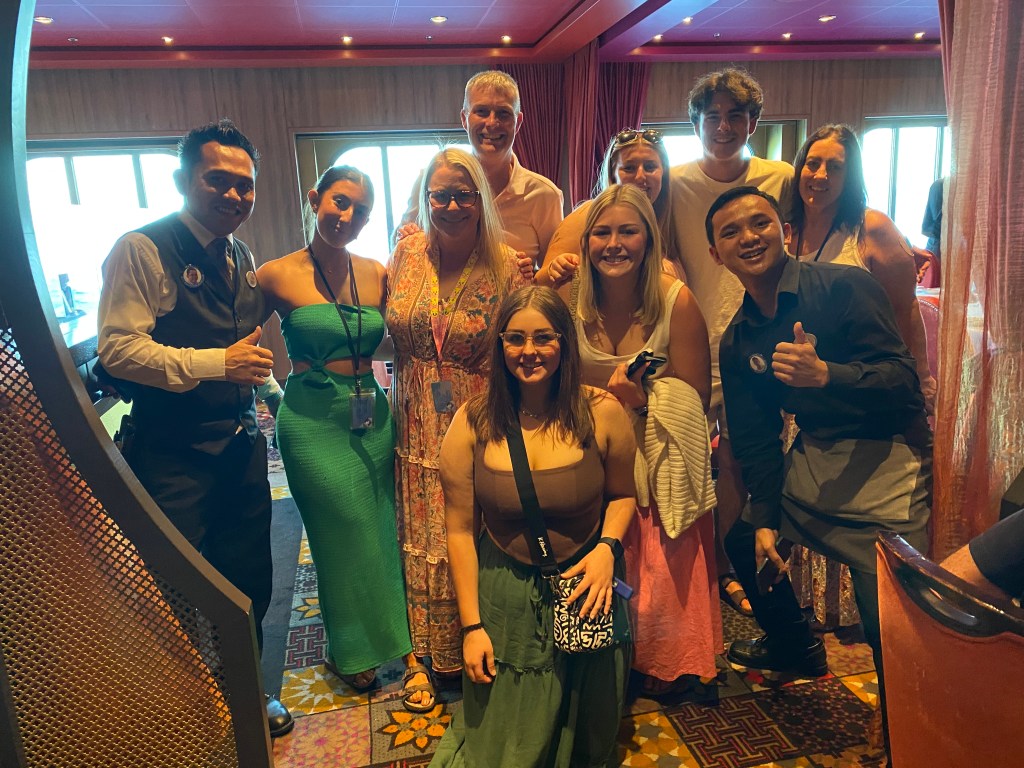 As we were leaving Australian waters, effectively travelling into international waters, we had to go through the customs process and from the moment we arrived at the dock to board the boat, it was a very slick operation, with minimal wait times and everyone was there to help you and get you on board as quick as possible. Soon enough, we were onboard and eager to find our room, luggage, and our very good friends, the Renny’s, oh look who we found just leaning around!