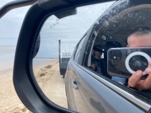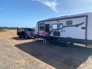 We were a little unsure of where to stop next, but one thing was on our to-do list, driving down the dirt road in Penong where the blue lake is on one side and the pink lake on the other. I wanted to get the drone out for this one, and I certainly can’t drive (tow) and drone? It was time, Belinda had to jump in the driver’s seat and carefully navigate the car and caravan down the road so I could get those awesome pictures and videos for you. While in Penong we quickly swung past Australia’s biggest windmill (Comet) and decided we would continue our journey to Ceduna.